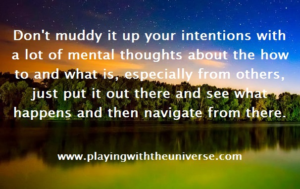 O Pensamento para hoje é: Não confunda as suas intenções com muitos pensamentos sobre como e o que é, especialmente dos outros. Apenas as coloque lá fora e veja o que acontece e, então, navegue a partir daí.