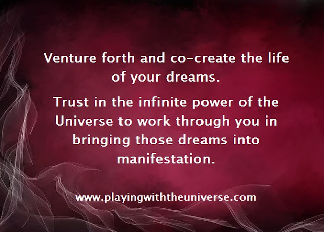 Pensamento para hoje: Aventure-se e co-crie a vida dos seus sonhos. Confie no poder infinito do Universo de trabalhar através de você, trazendo estes sonhos à manifestação.