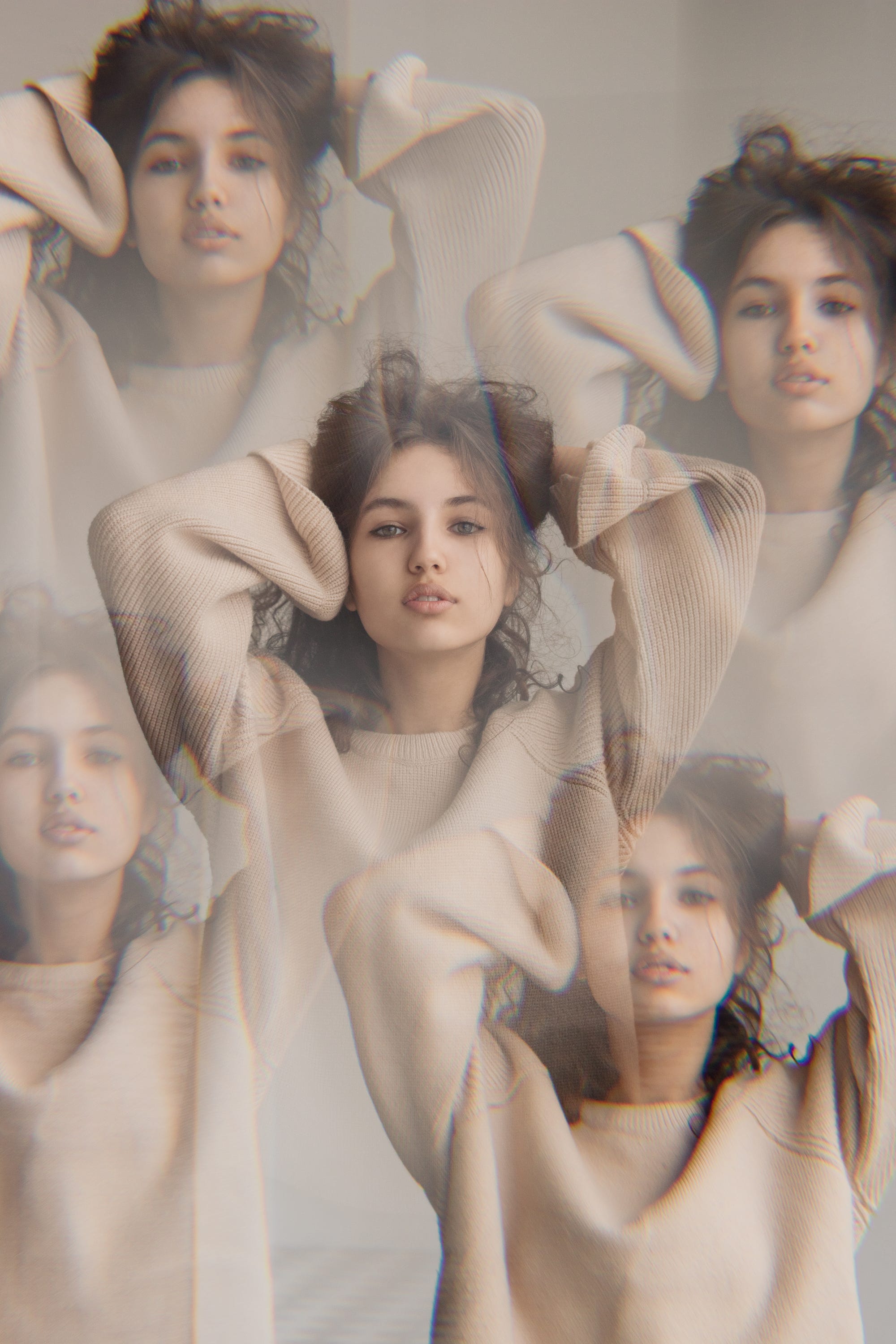 “A close-up of woman's eyes through her hands surrounded by fairy lights.” by Rhett Wesley on Unsplash